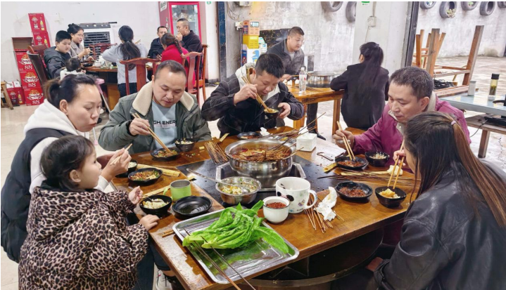 11月3日傍晚,记者一走进位于民建镇北门桥头的佳香麻辣烫,那股浓郁又熟悉的香味扑鼻而来。店里坐得满满当当,每张桌子前的客人都吃得额头冒汗、满脸红光。