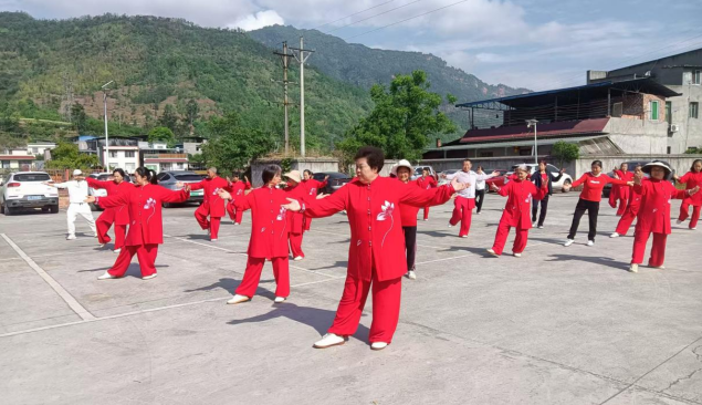 县老体协太极拳分会在劳动镇河边公园开展庆“五一节”太极拳活动。大家穿着红色太极队服表演了太极拳、太极扇、太极刀、健身气功“八段锦”、桩功等多项节目,达到了“我运动、我健康、我快乐”的目的。